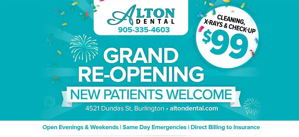 You can contact Alton Dental by phone at (905) 335-4603 or by email at [email protected] Their office is located at 4521 Dundas Street, Burlington, Ontario, L7M 5B4.